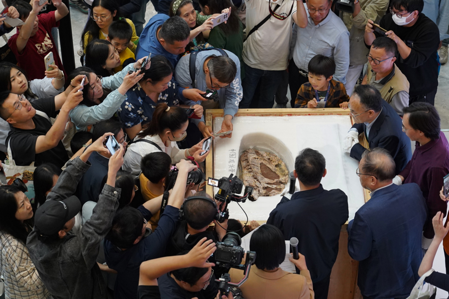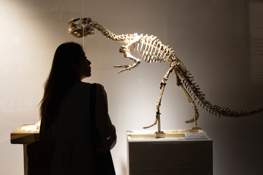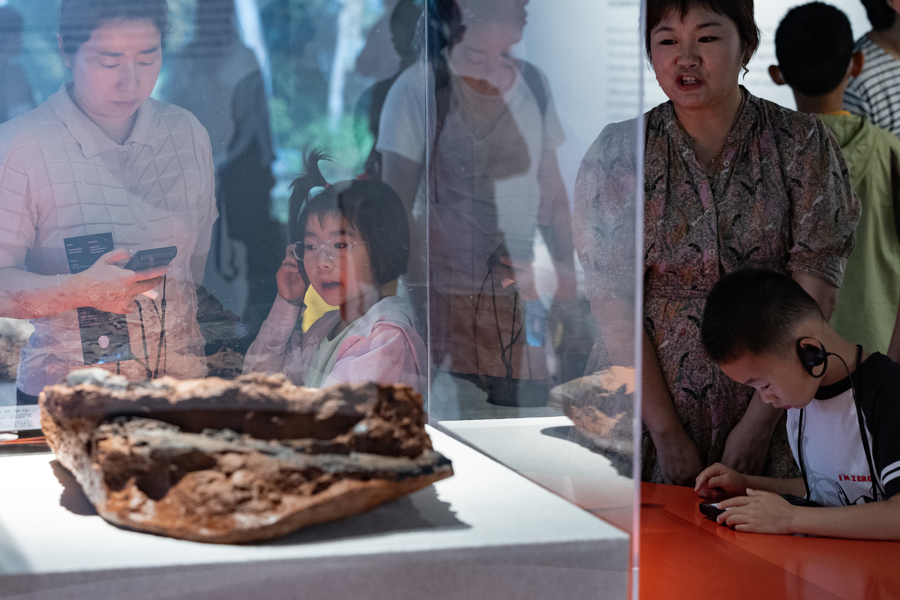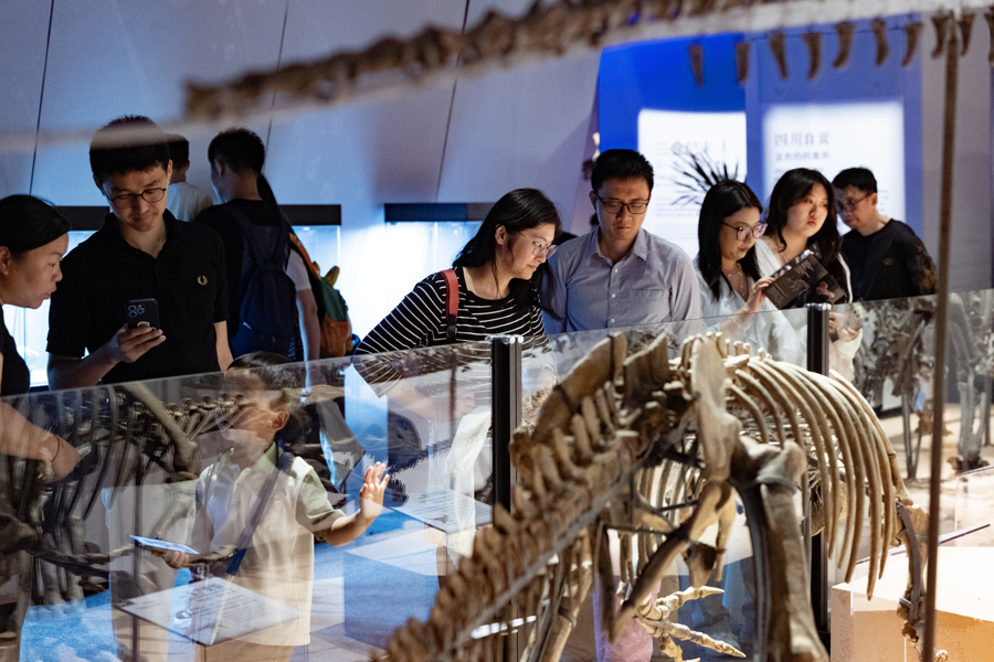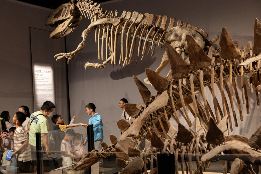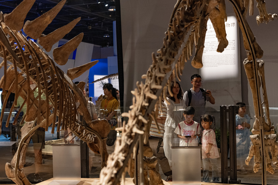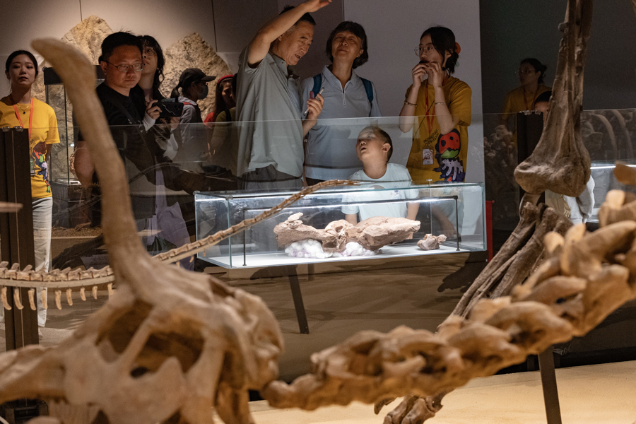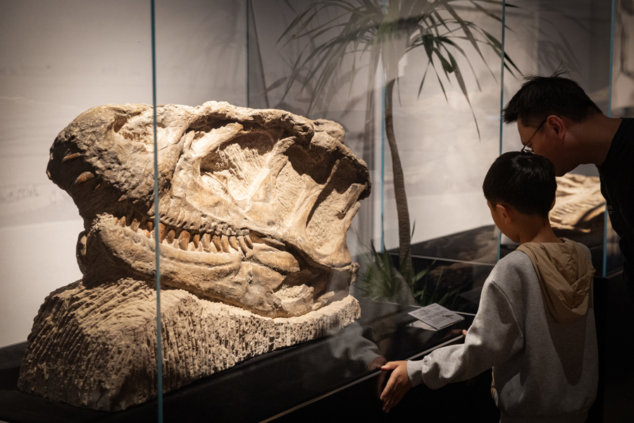观众在展览上欣赏巨型和平永川龙化石。