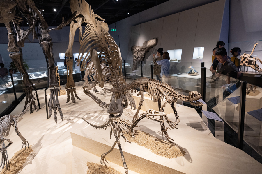 “目前世界上已发现1000多种恐龙,中国恐龙超过350种,主要处于从侏罗纪初期至白垩纪末期,历经了恐龙家族崛起、分化辐射、鼎盛至大灭绝期间。”上海科技馆藏品保护与研究中心副主任张云飞告诉记者。此次大展,他和策展团队走遍全国12家科研院所和科普场馆进行考察,历时两年努力,终于让这批科研价值极高、多数从未走出研究机构的珍贵标本来到上海。
