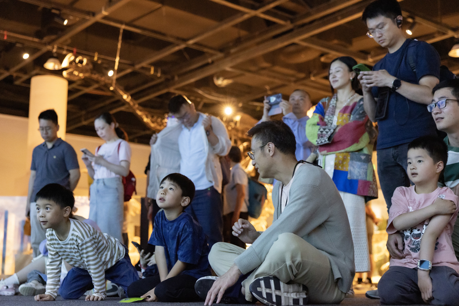 小朋友在聆听中华贝贝龙的语音讲解。