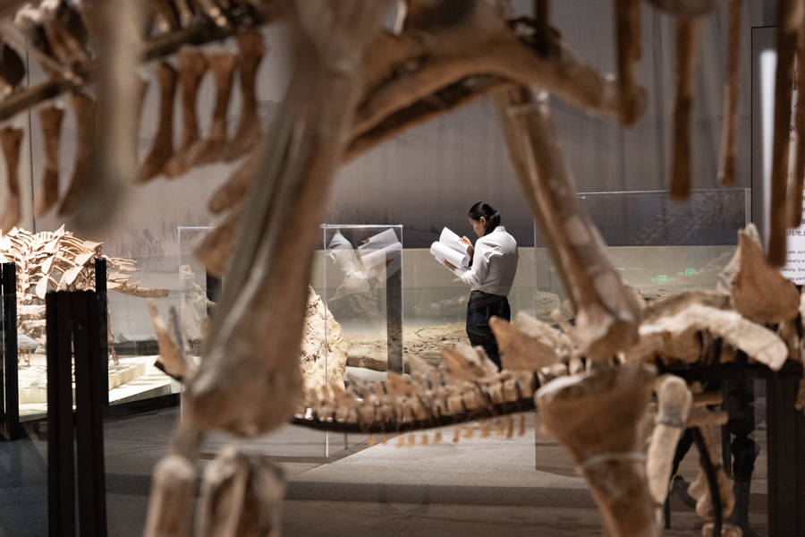 为了完整呈现中国恐龙演化的历程,此次展览不只是展出化石标本,还要用这些标本来讲述一个关于生命演化的故事,这是策展团队一直在思考的核心问题。“我们为展览设了一条明线和一条暗线,明线是恐龙在不同地质时代的进化过程,而暗线则是伴随着恐龙演化,这些自然环境里的一草一木所经历的变迁。”张云飞说,“地球上每时每刻都有新的生物在出现,也有生物在灭绝,灭绝与新生交替前行,这是恐龙给我们的启示。”